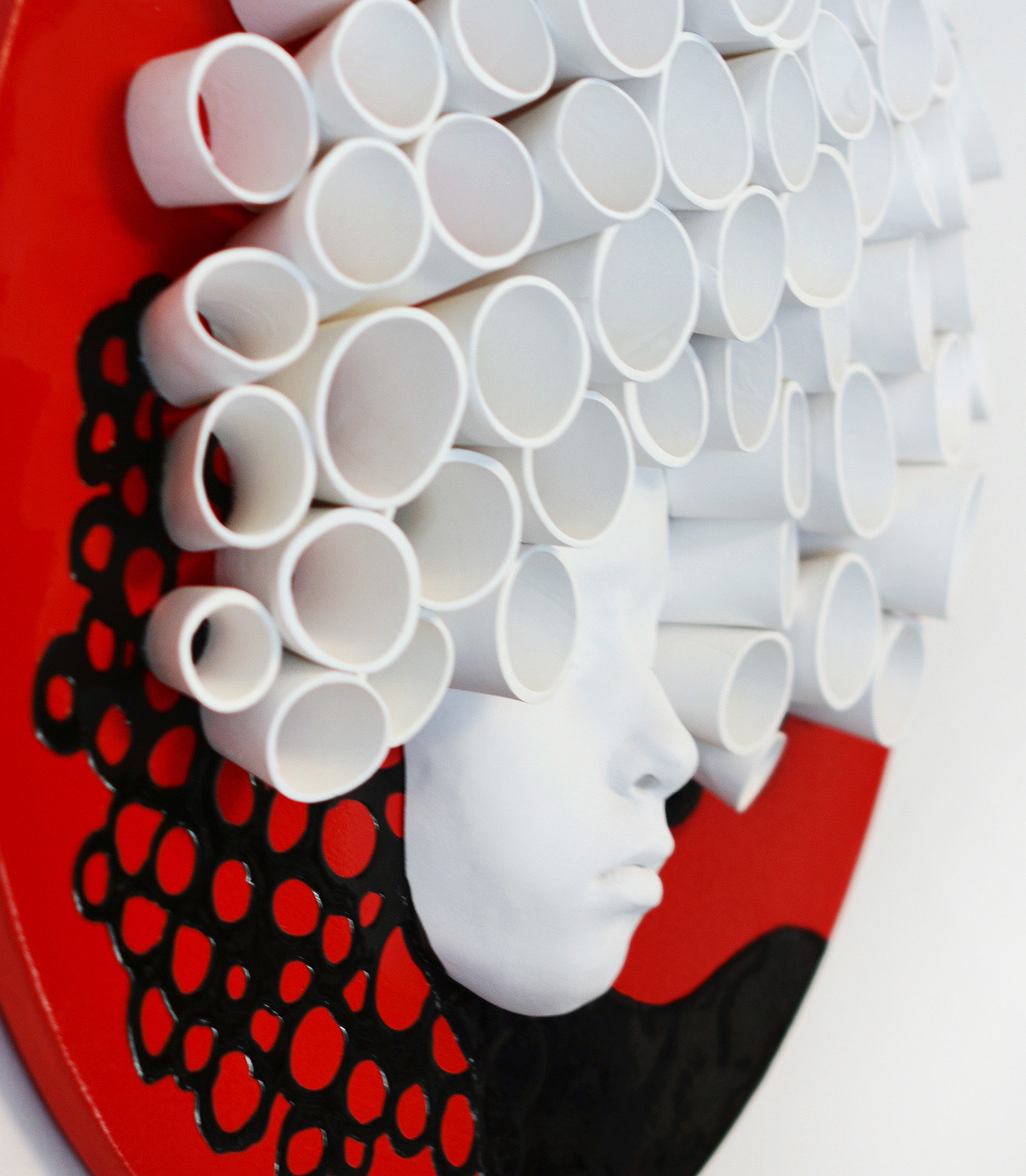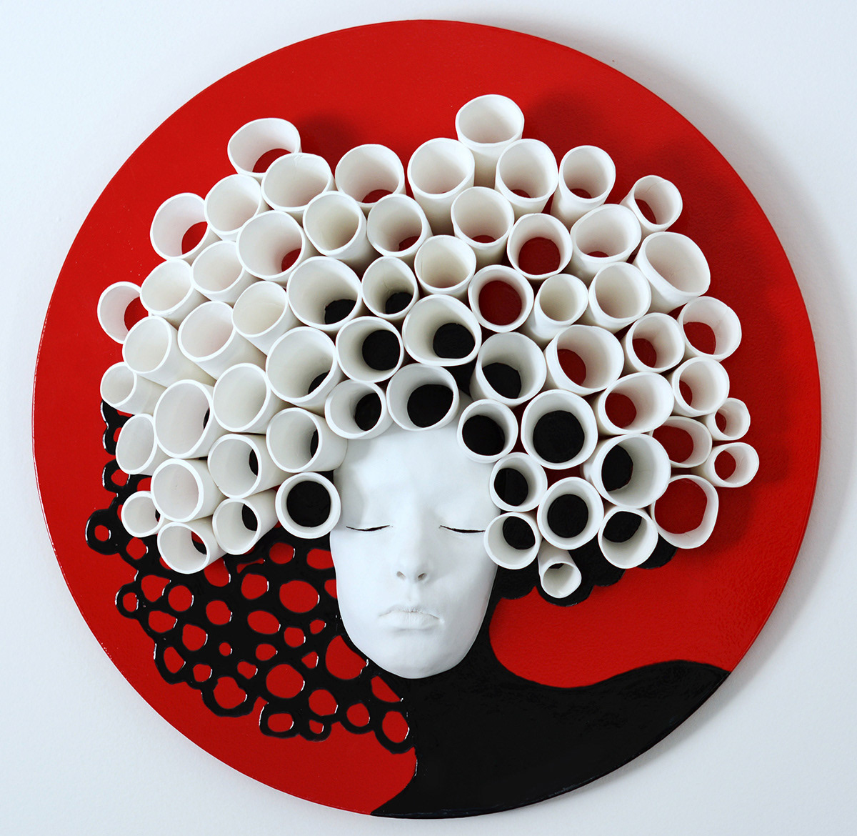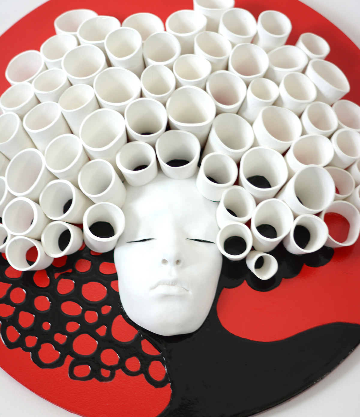 20" wooden plate, gypsum, clay, paint