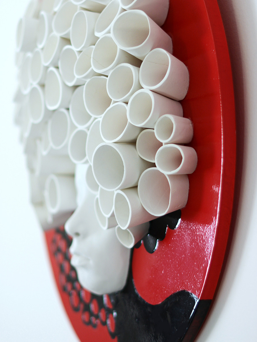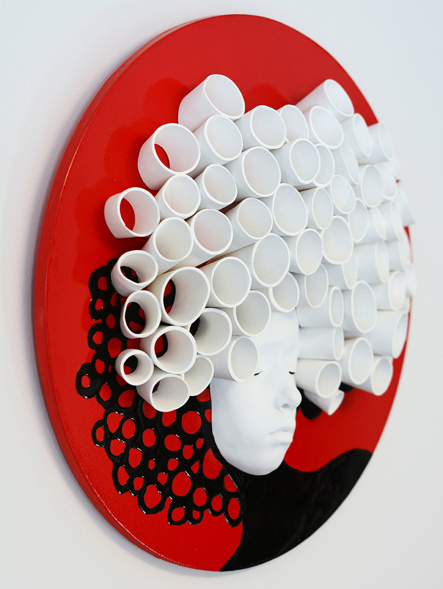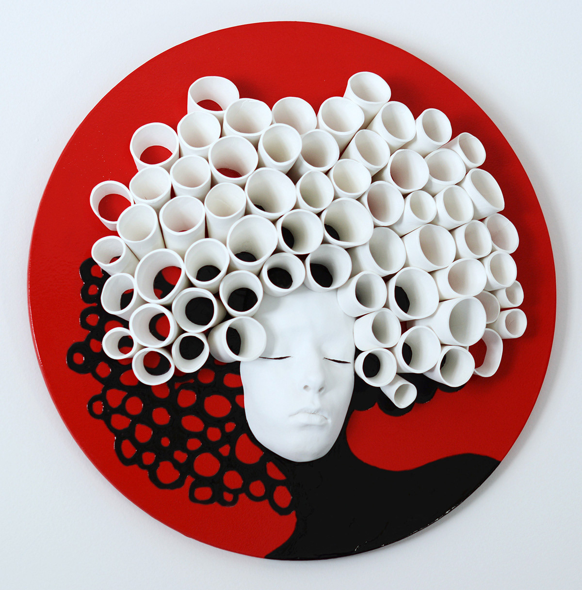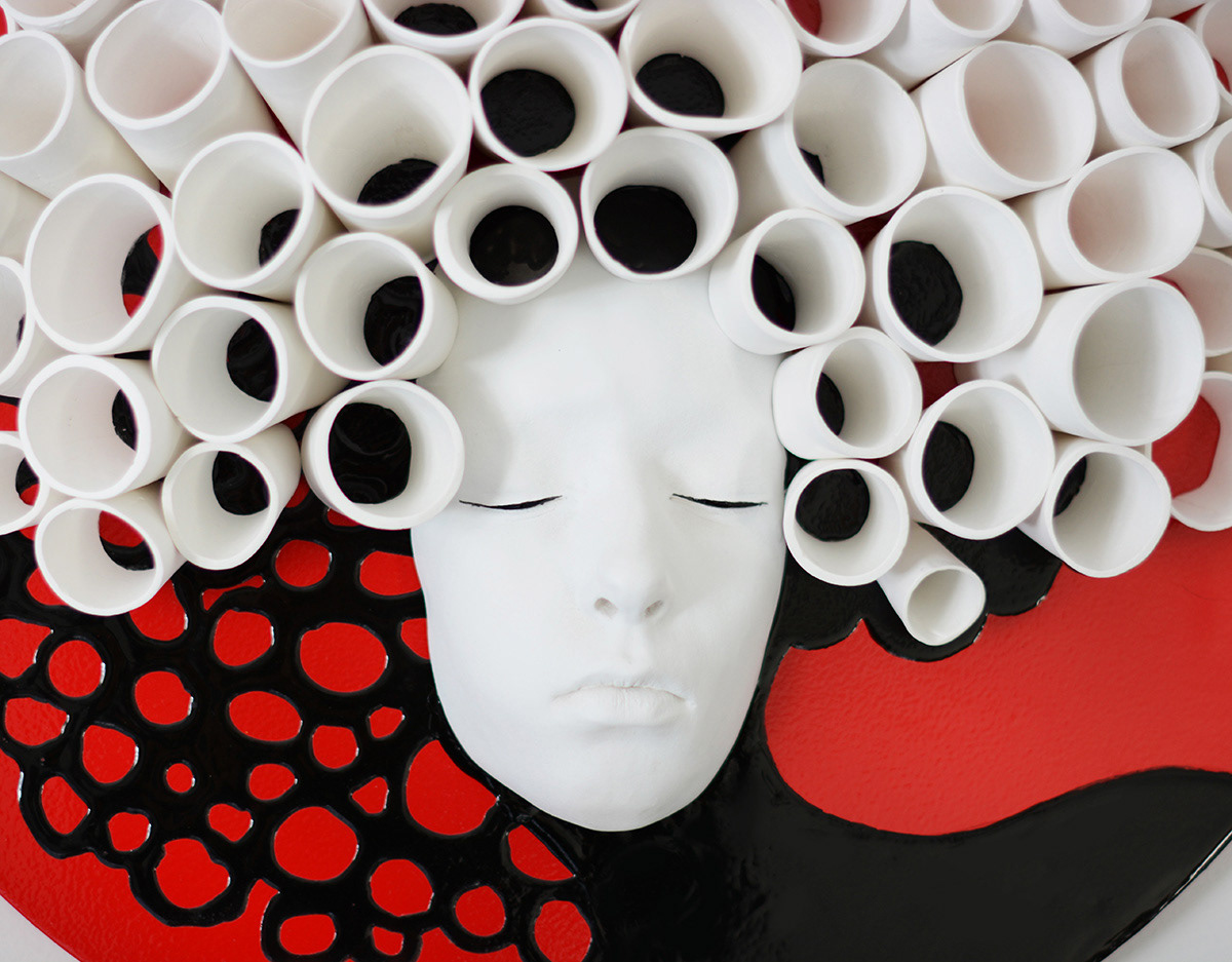 20" wooden plate, gypsum, clay, paint