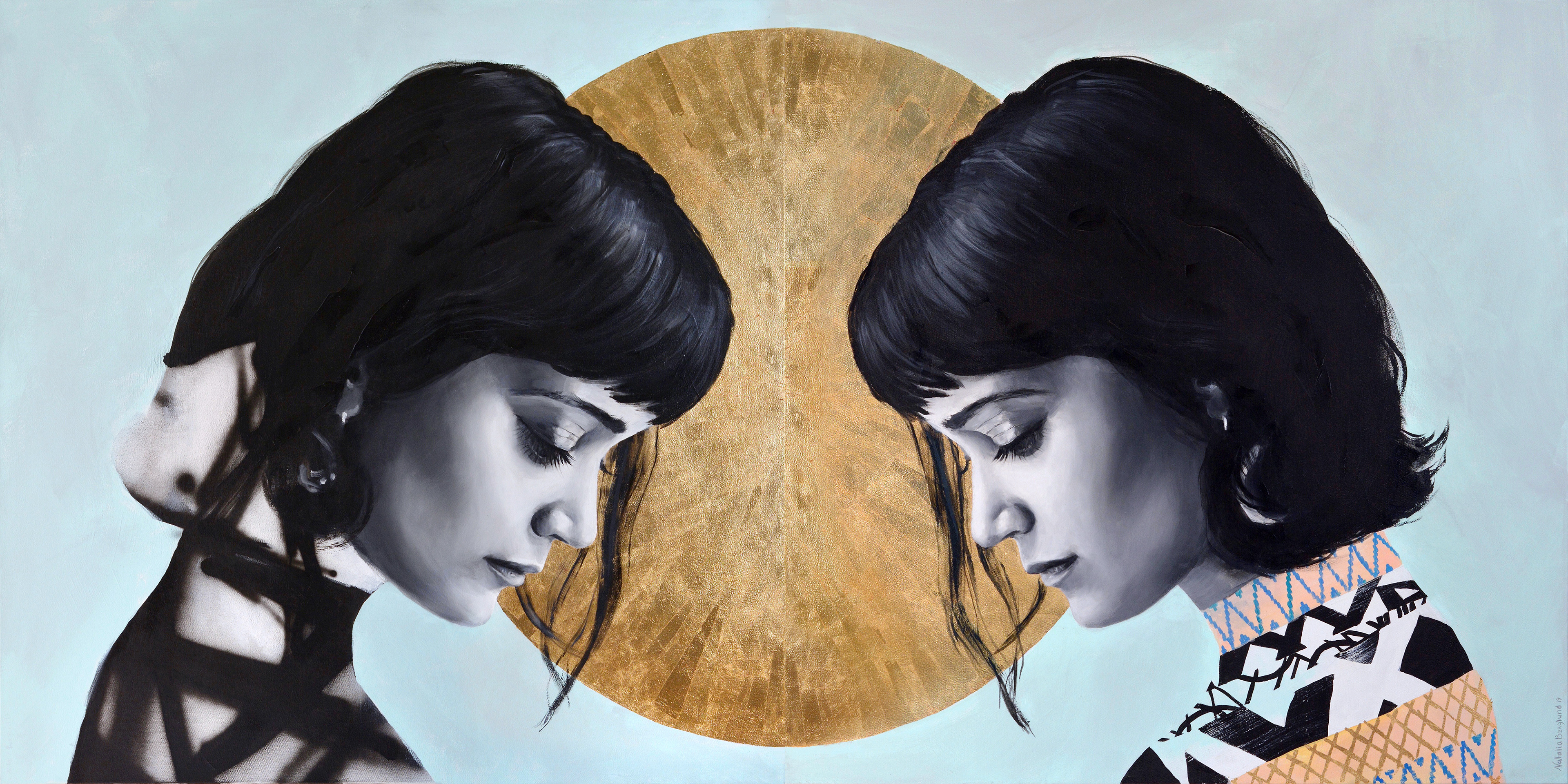 36x72" Oil, acrylic, gold leaf on canvas (two 36x36" panels)