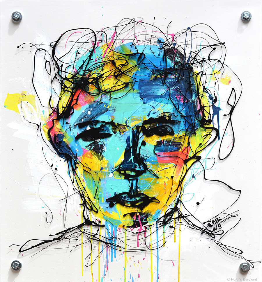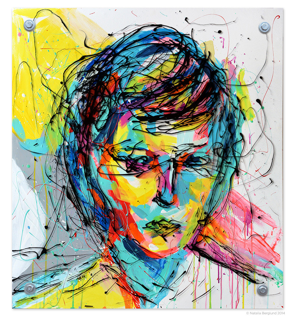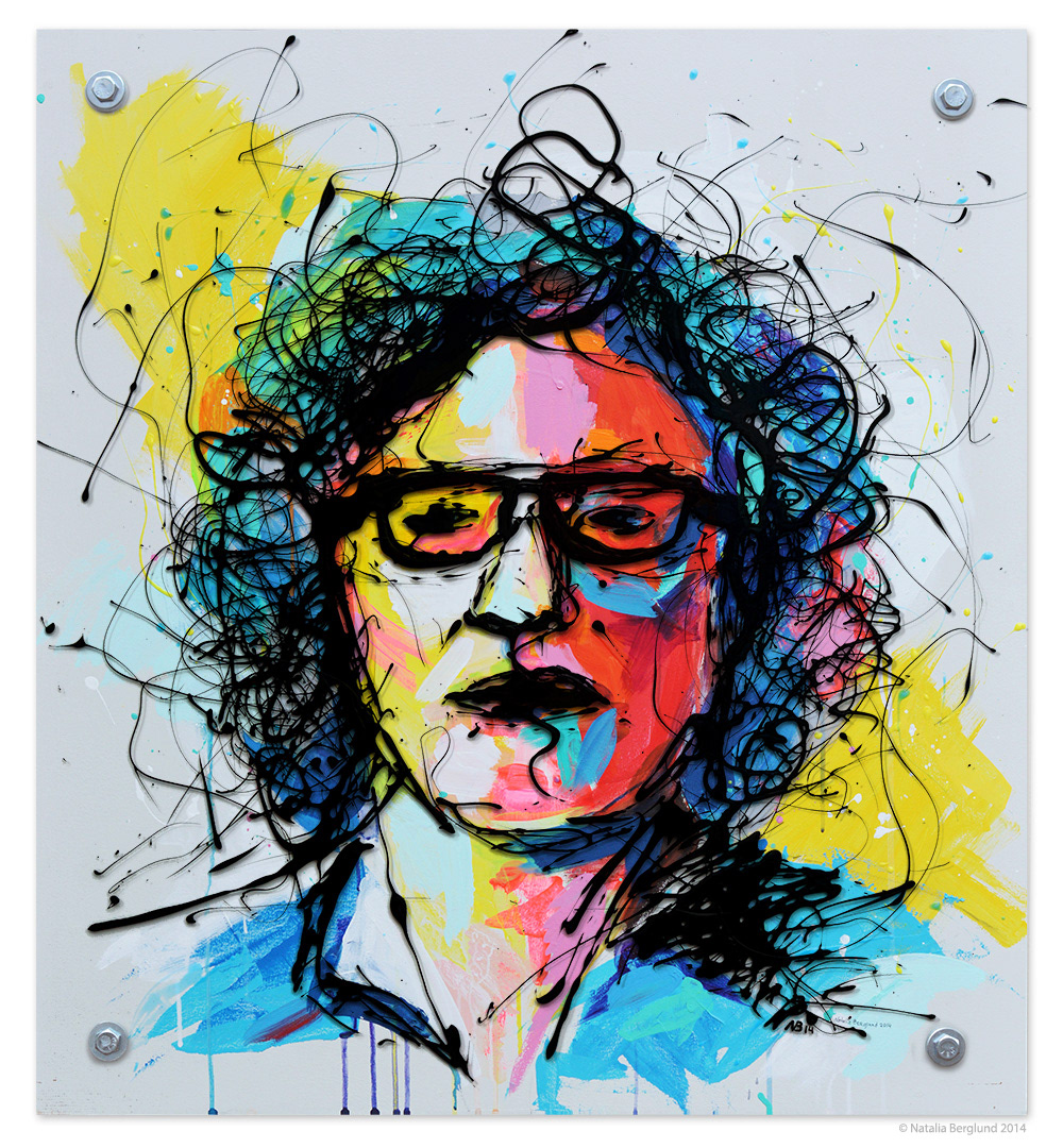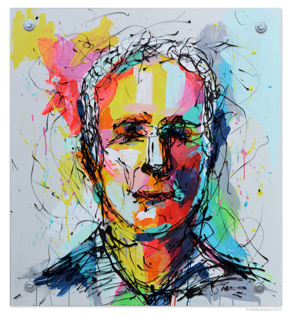 34x31" abstract portraits on panel with plexiglass overlay suspended 1/2" away from the board.