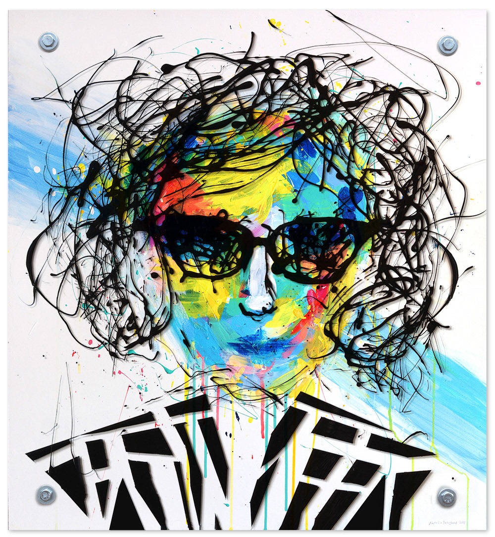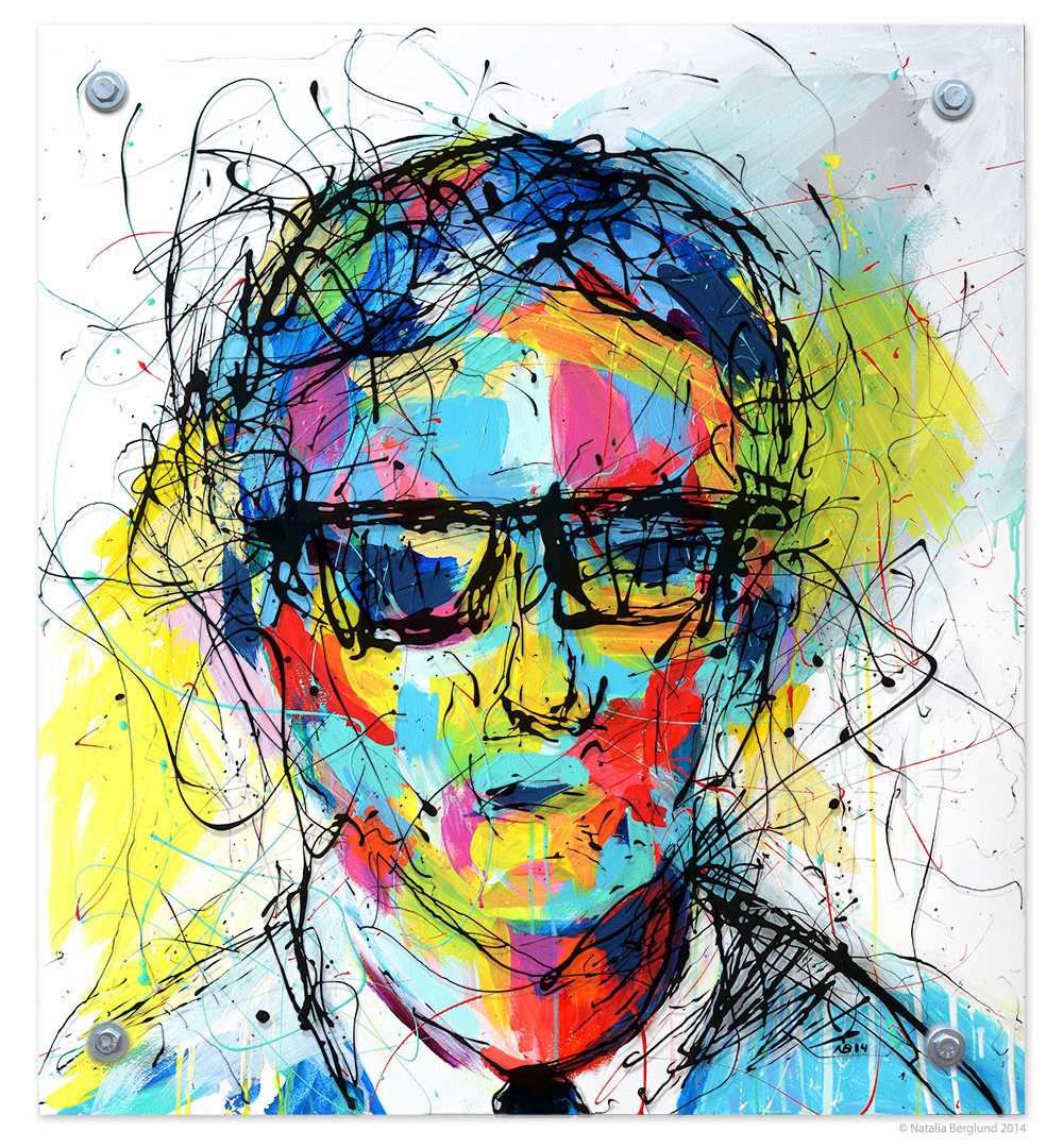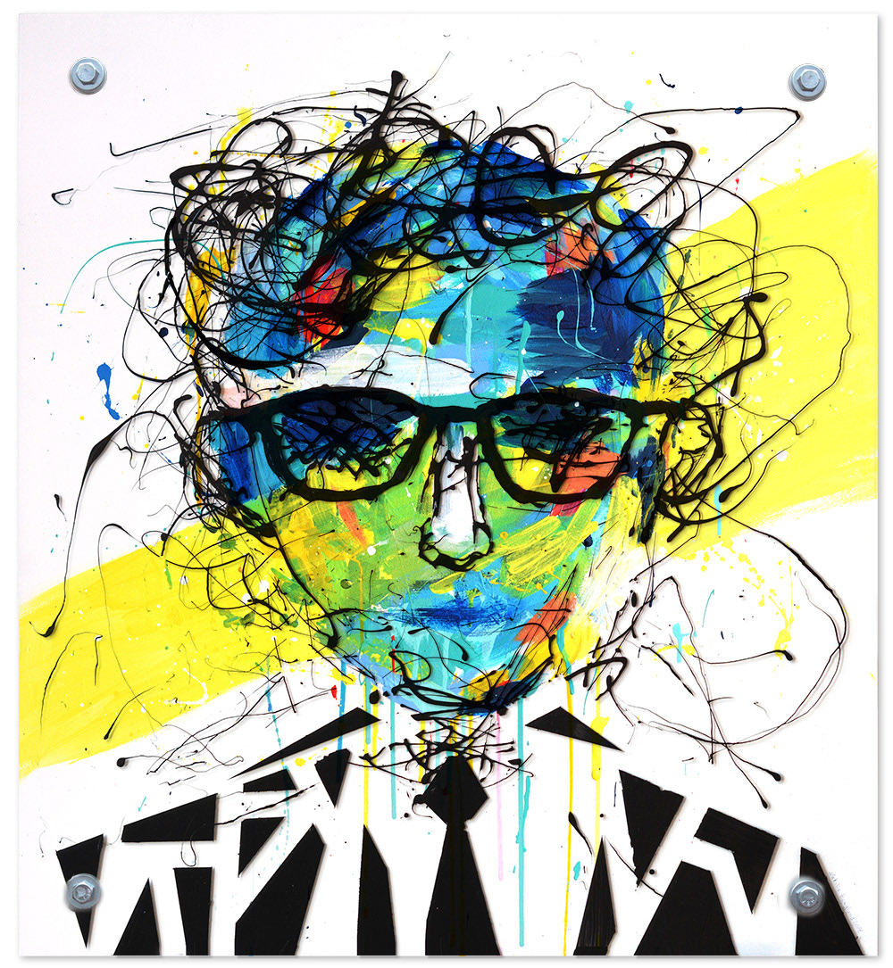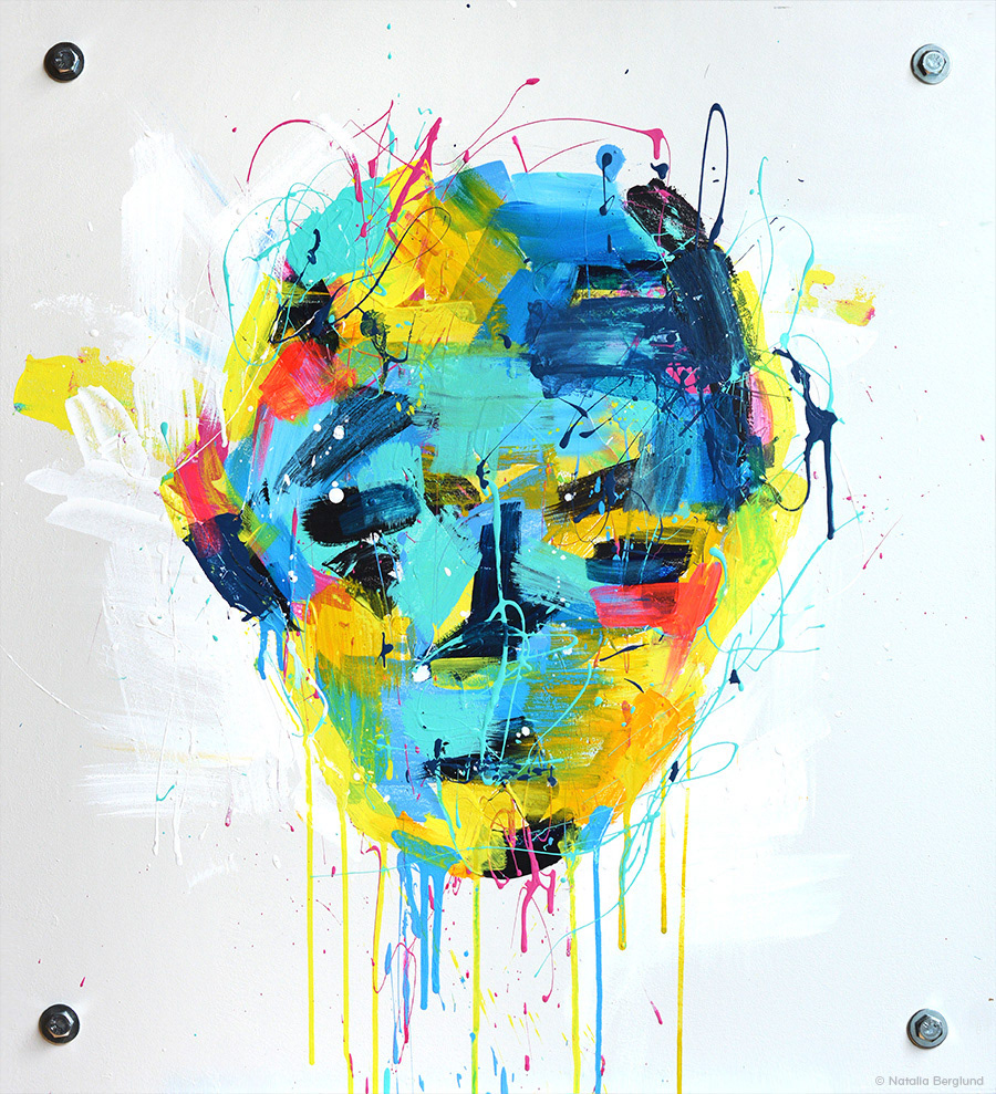 34x31" abstract portraits on panel with plexiglass overlay suspended 1/2" away from the board.